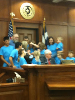 This is a picture at the adoption of one of our children. I am the Mom of 17 children. One bio, 12 adopted and 4 foster (soon to be adopted). I am a full time stay at home Mom. Also, grandmother of 3. I keep one of my grandchildren 3 days a week. Things are pretty crazy around our house and I have little time to myself. I would be happy to get to go anywhere alone including the bathroom.